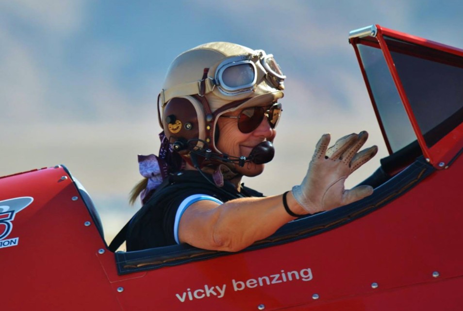 Born and raised in California, Vicky Benzing is an accomplished pilot, skydiver, aerobatic performer, and air racer. With over 10,000 hours of flight time and over 1300 parachute jumps, Benzing has a passion for everything airborne. Her flying career has spanned over forty years, and she currently holds an Airline Transport Pilot rating as well as a commercial rating in helicopters, seaplanes, and gliders. For more information on Benzing, visit https://www.vickybenzing.com.