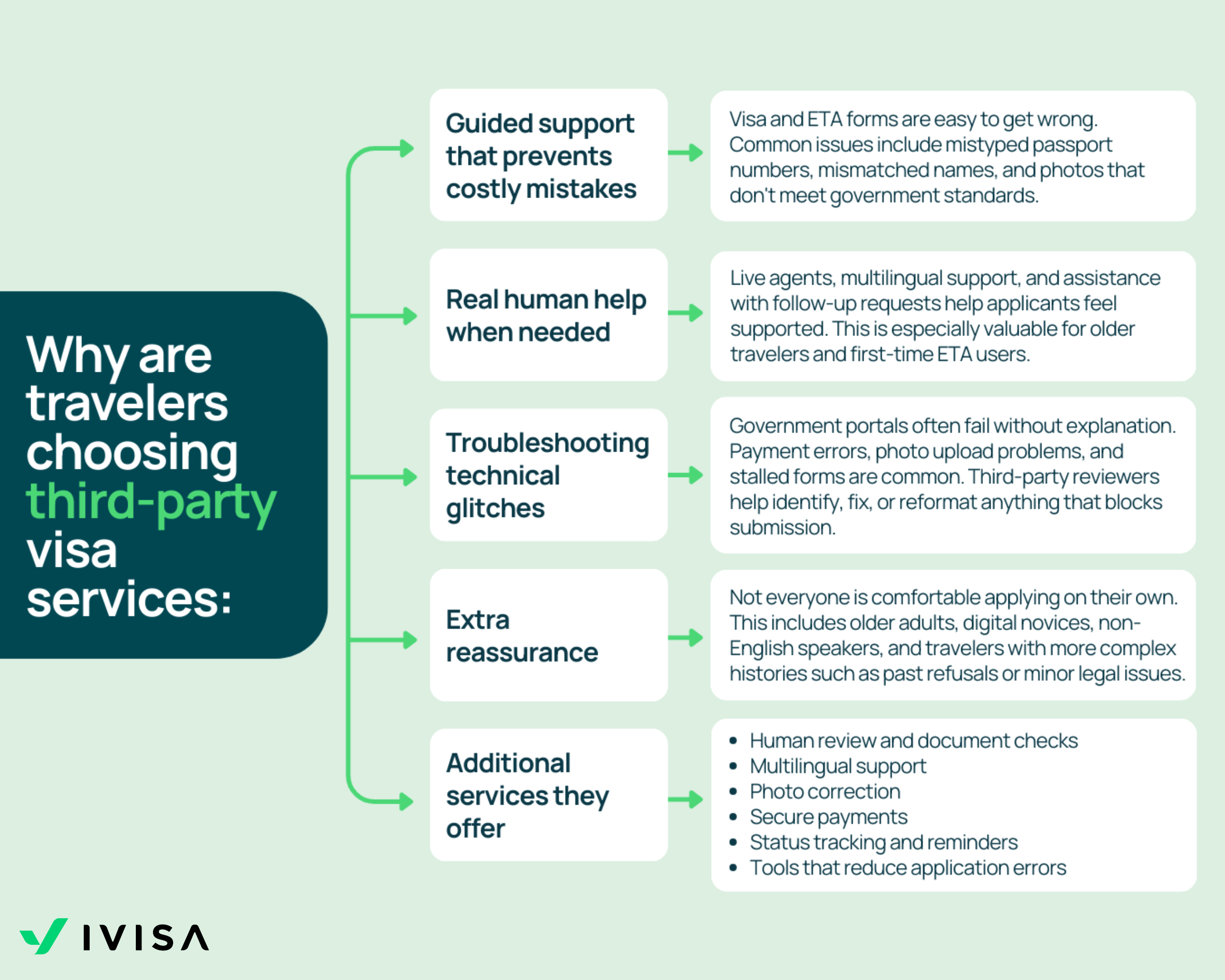 Third-party platforms like iVisa are preferred by those who want assistance, clarity, scam protection, and help navigating technical or formatting issues.