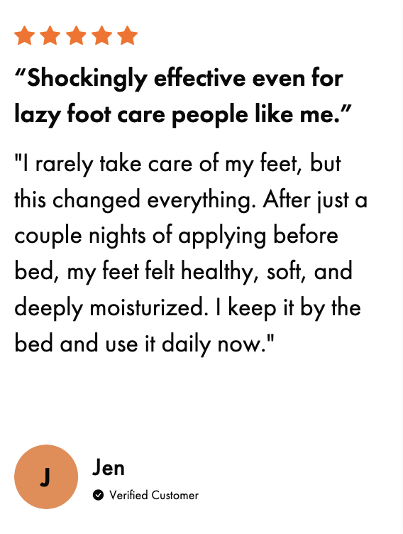 One customer wrote, “I rarely take care of my feet, but this changed everything. After just a couple nights of applying before bed, my feet felt healthy, soft, and deeply moisturized. I keep it by the bed and use it daily now.”